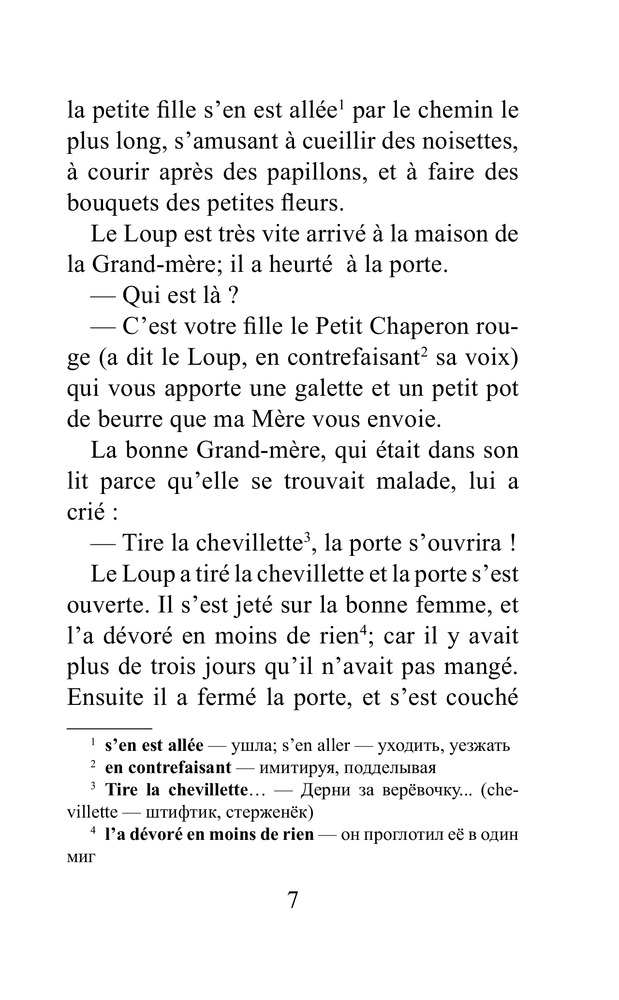 Сказки незначительно сокращены, снабжены комментариями, в которых объясняются некоторые языковые сложности и исторические реалии. В конце каждой сказки даны упражнения для проверки понимания текста и закрепления новой лексики. Книгу завершает краткий французско-русский словарь.