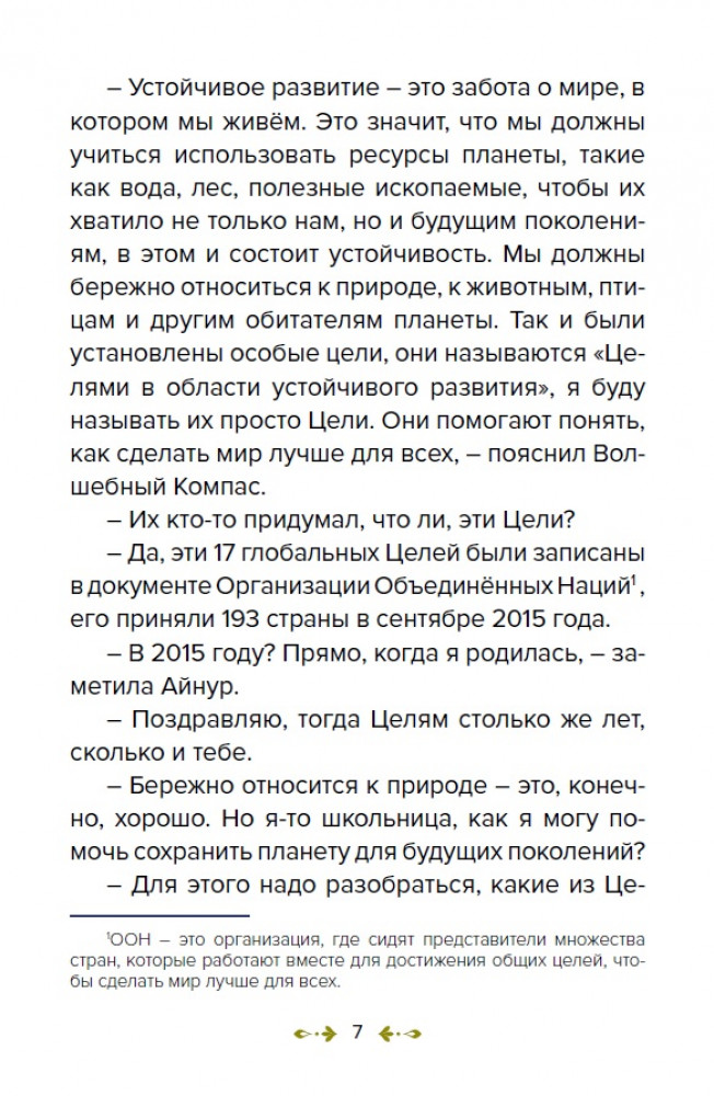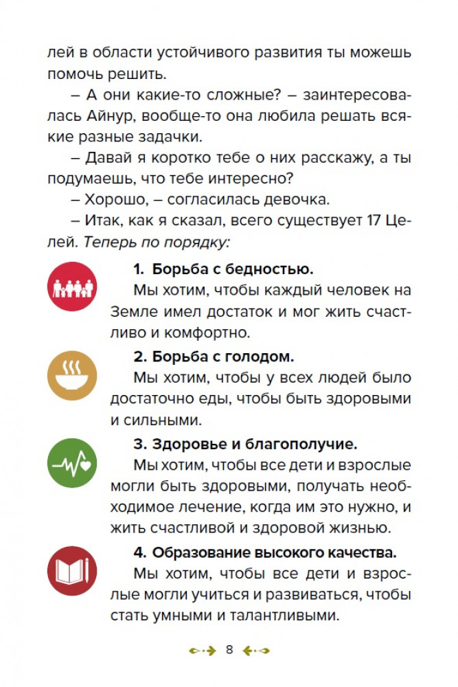 💳 Оплатить за товар можно при получении 🇰🇿 Есть бесплатная доставка по Казахстану от 1 дня 🎁 Копите бонусы с каждой покупки В этой книге маленькие читатели познакомятся с 17 целями в области устойчивого развития. Следуя за Айнур и Волшебным Компасом, дети отправятся в путешествие по просторам нашей планеты, чтобы исследовать самые важные проблемы нашего времени и найти способы их решения. Узнают о важности борьбы с бедностью, защиты окружающей среды, обеспечения здоровья и образования для всех, а также о многих других аспектах устойчивого развития. |
