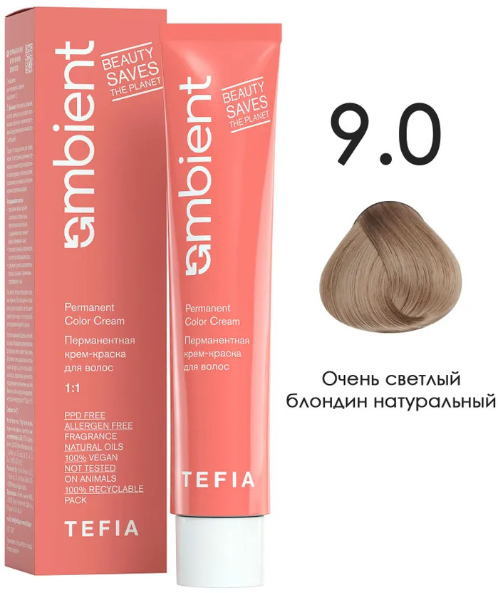 Tefia Крем-краска для волос перманентная, оттенок 9.0 Очень светлый блондин натуральный