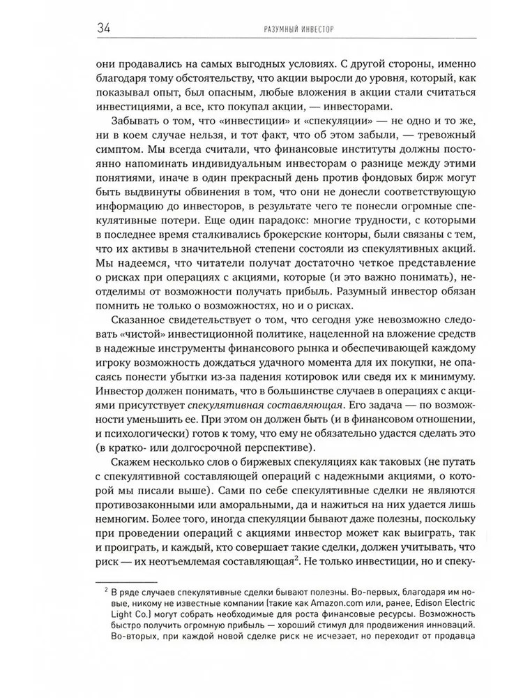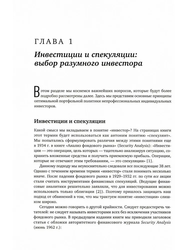 Мировой бестселлер, выдержавший множество переизданий по всему миру, книга Бенджамина Грэма (1894-1976) является уникальным пособием по выстраиванию инвестиционной политики. Автор, всемирно известный экономист и авторитетный профессиональный инвестор, главное внимание уделяет не анализу ценных бумаг, а принципам инвестирования, предлагая действовать разумно и осторожно независимо от поведения фондового рынка. Бенджамин Грэм показывает, как много возможностей открывается перед инвестором, ведущим себя как расчетливый бизнесмен. Разработанные автором подходы к инвестированию — такие как стоимостное инвестирование по оборотным активам, предпринимательское и защищенное стоимостное инвестирование — это бесценные инструменты, безотказно действующие даже в условиях самого капризного рынка.
