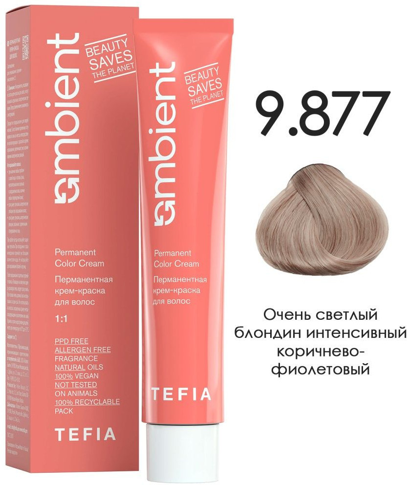Tefia Крем-краска для волос перманентная, оттенок 9.877 Очень светлый блондин интенсивный коричнево-фиолетовый