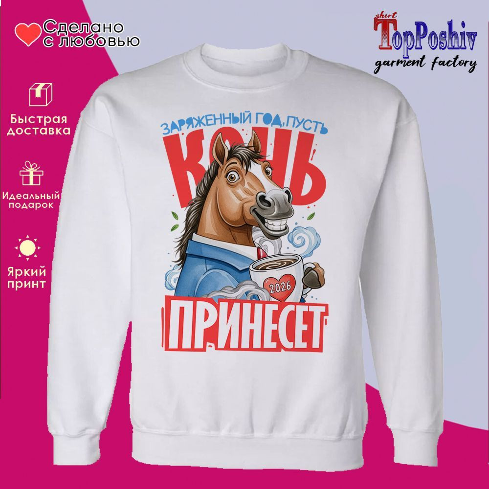 TopPoshiv Свитшот с принтом «Заряженный год, пусть конь принесет»