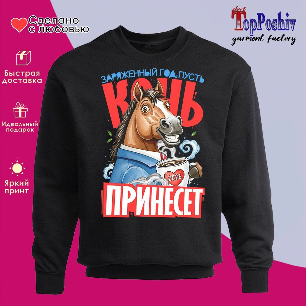 TopPoshiv Свитшот с принтом «Заряженный год, пусть конь принесет»