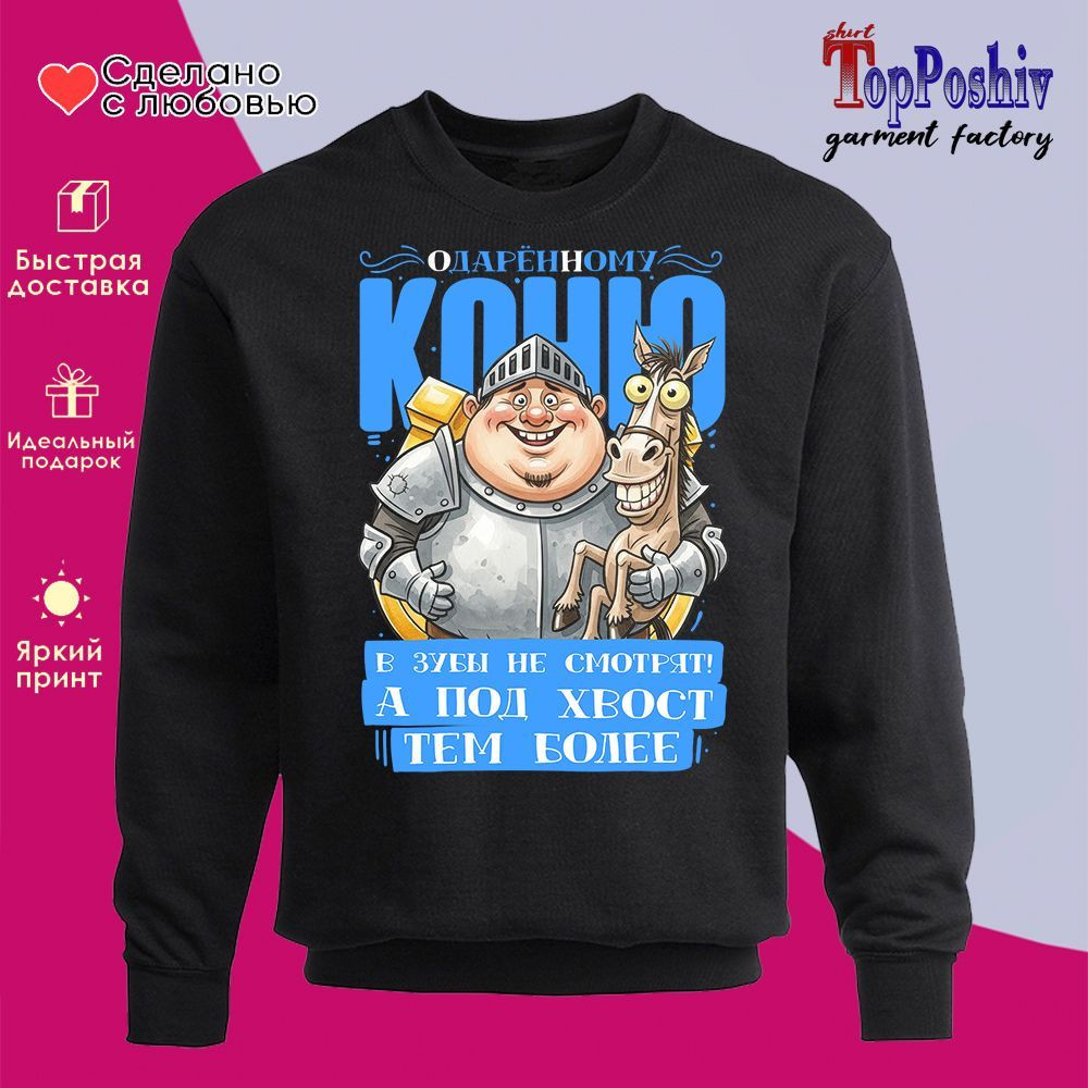 TopPoshiv Свитшот с принтом «Одаренному коню в зубы не смотрят муж»