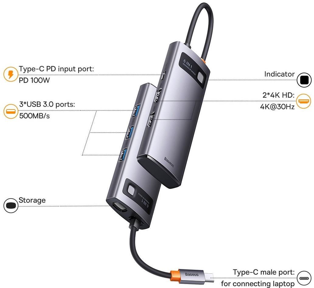 💳 Оплатить за товар можно при получении 🇰🇿 Есть бесплатная доставка по Казахстану от 1 дня 🎁 Копите бонусы с каждой покупки Концентратор серии Baseus Metal Gleam 6 в 1 док-станция USB Type-C to HDMI x 2 + USB3.0×3 + PD x 1. При использовании компьютера или ноутбука у вас когда-нибудь была нехватка свободных разъемов для подключения других устройств? Небольшое количество стандартных USB-разъемов может вызвать разочарование. Гаджет от Baseus решит не только эту проблему. Это также ряд других удобных решений, которые сделают использование компьютера или ноутбука намного удобнее. |