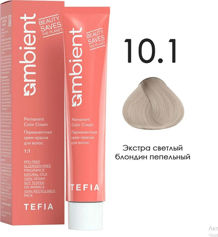 Tefia Крем-краска для волос перманентная, оттенок 10.1 Экстра светлый блондин пепельный