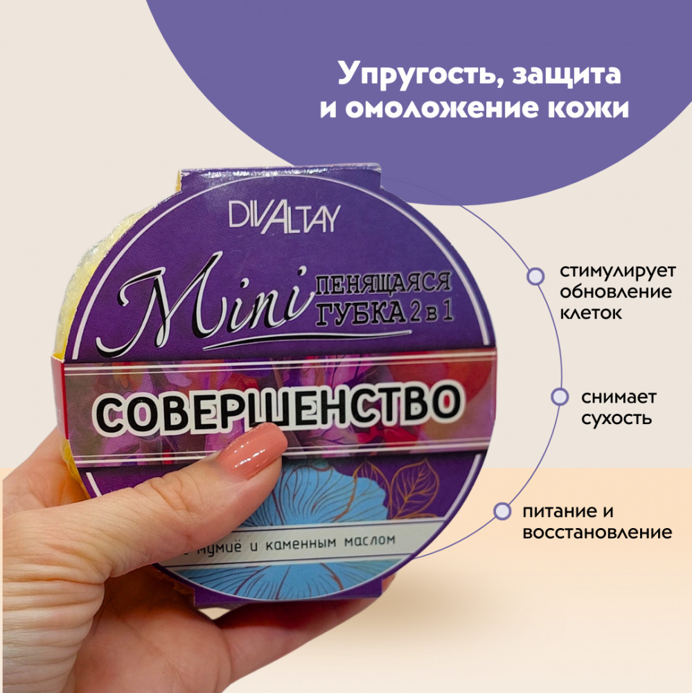Пенящаяся мини-губка от DivAltay подходит для ухода за кожей лица и тела, благодаря мягкой моющей основе, которой она пропитана. Откройте для себя уникальную мини-губку «Совершенство с мумие и каменным маслом» от DivAltay. Эта губка идеально подходит для ежедневного ухода за кожей, сочетая в себе древние традиции и современные разработки.