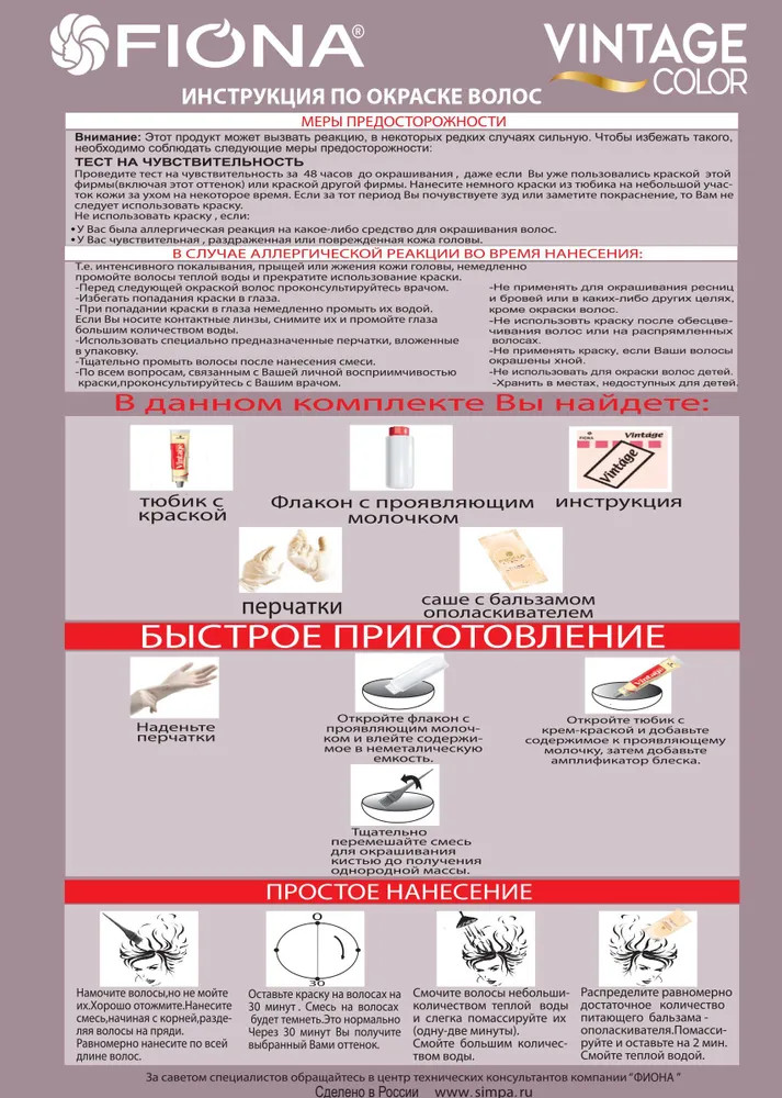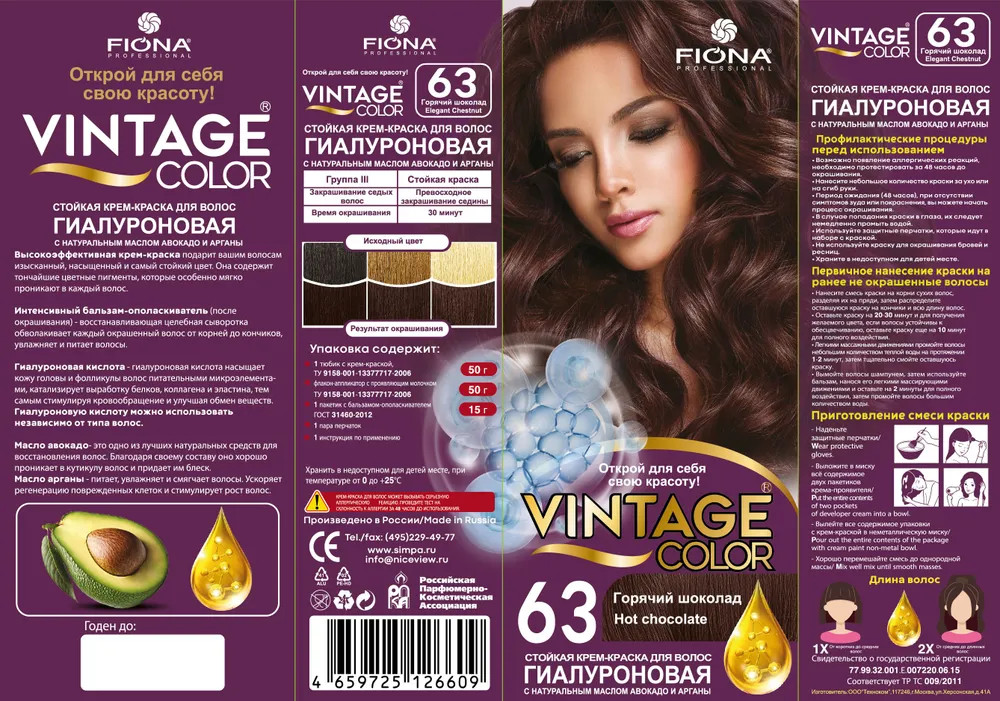 • благодаря кремообразной текстуре краска для волос Винтаж проста в применении и не стекает во время окрашивания, хорошо распределяется по всей длине волос.