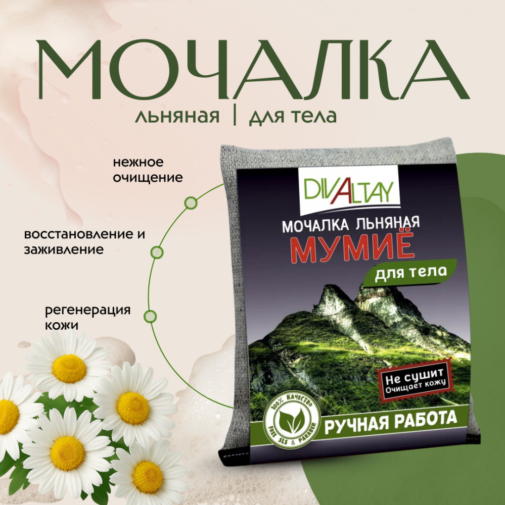 Льняная мочалка для тела «Мумиё» — это идеальное средство для нежного ухода и восстановления кожи тела. Сочетание мягких льняных волокон и экстракта «Мумиё» обеспечивает эффективное и деликатное очищение кожи от грязи, избытка кожного жира и других загрязнений, а также способствует регенерации кожи, устранению раздражений и ускорению заживления ран.