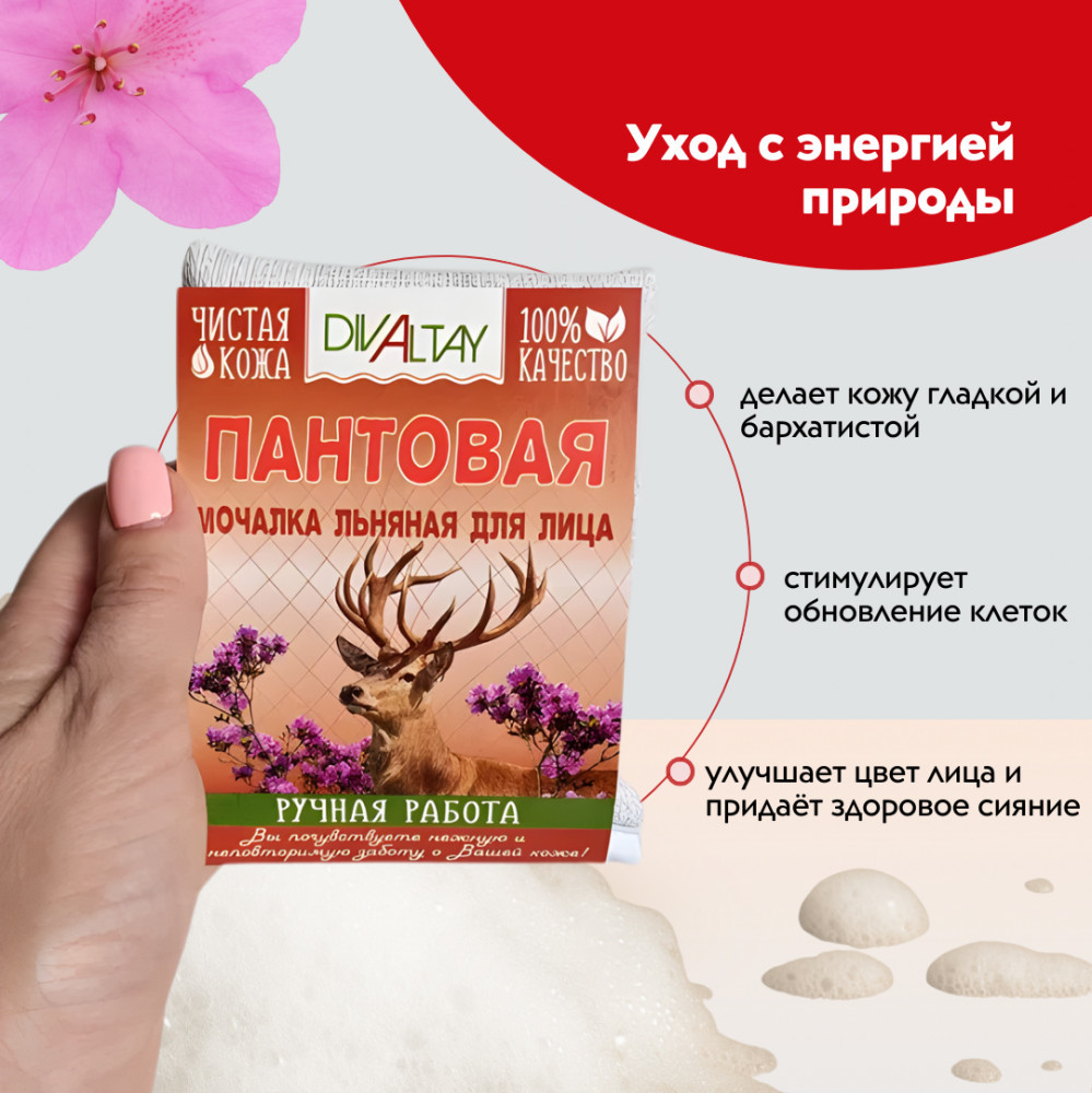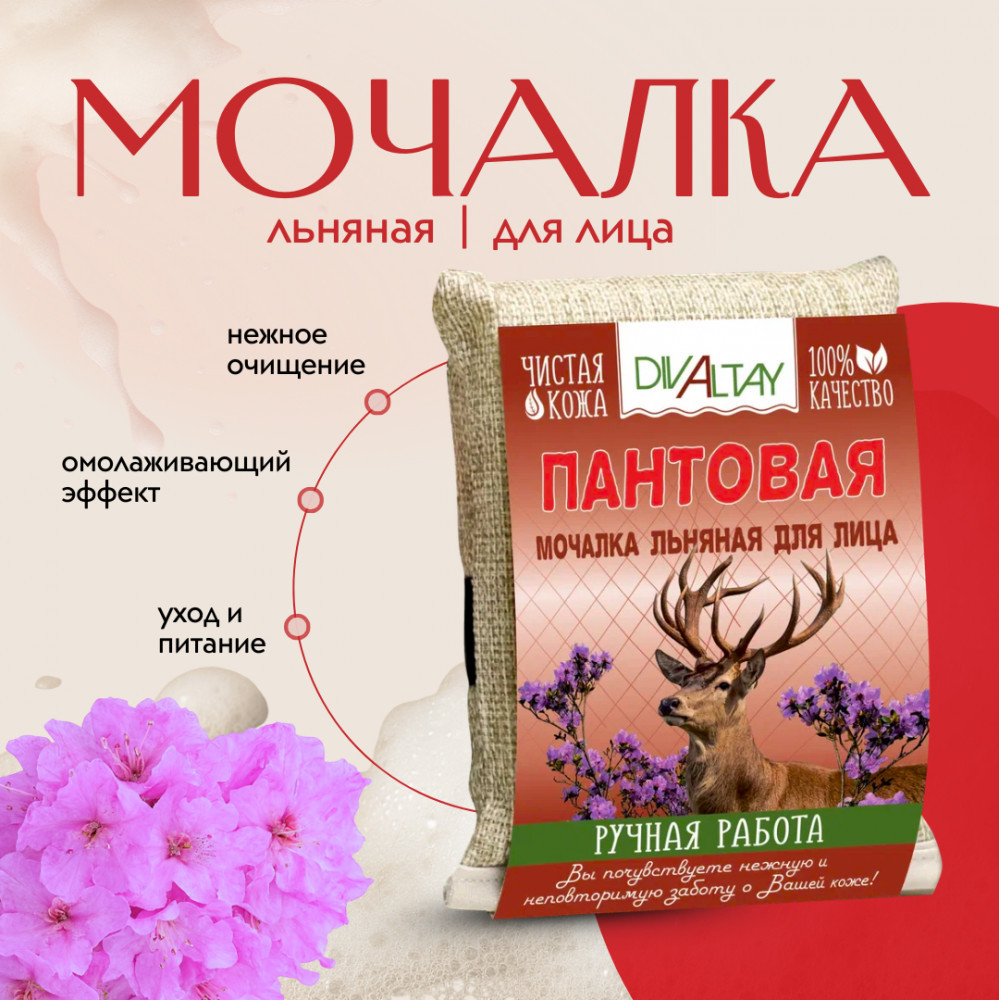 Льняная мочалка для лица «Пантовая» — это идеальное средство для нежного ухода и омоложения кожи лица. Сочетание мягких льняных волокон и экстракта «Пантов» обеспечивает эффективное и деликатное очищение поры от грязи, избытка кожного жира и других загрязнений, а также способствует улучшению эластичности и упругости кожи.