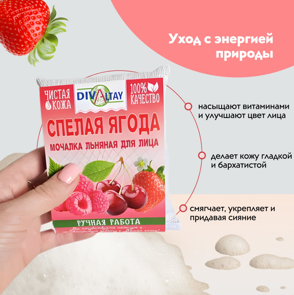 Льняная мочалка для лица «Спелая Ягода» — это идеальное средство для нежного ухода и придания сияния коже лица. Сочетание мягких льняных волокон и экстракта «Спелой Ягоды» обеспечивает эффективное и деликатное очищение поры от грязи, избытка кожного жира и других загрязнений, а также способствует увлажнению и улучшению тонуса кожи.