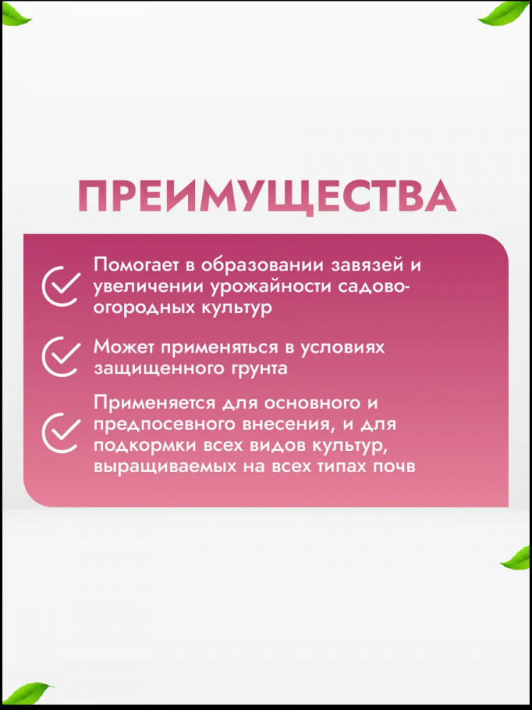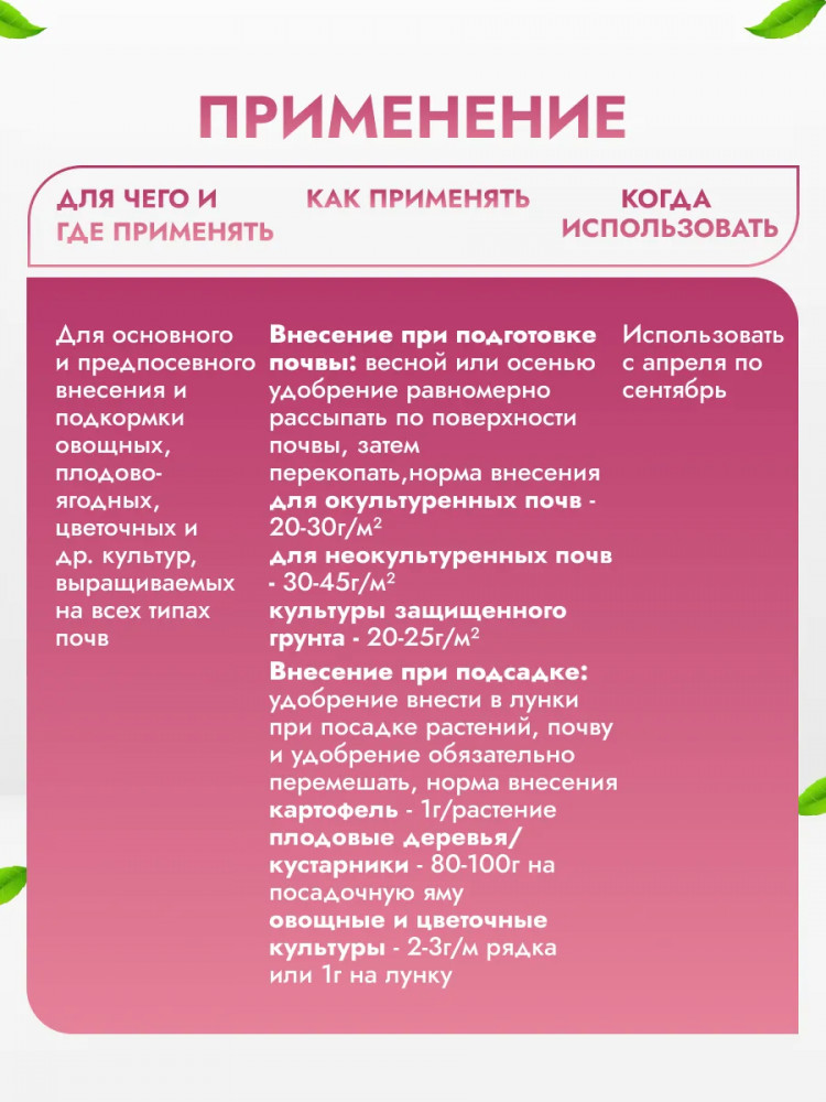 💳 Оплатить за товар можно при получении 🇰🇿 Есть бесплатная доставка по Казахстану от 1 дня 🎁 Копите бонусы с каждой покупки Удобрение минеральное «Суперфосфат двойной» — эффективное удобрение для поддержания здоровья и роста различных растений. Он обеспечивает почву фосфором, который необходим для развития корневой системы, образования бутонов и полноценного цветения. Применение этого средства способствует активному росту и укреплению зеленых насаждений, помогает формировать пышную листву, а также поддерживает устойчивость к неблагоприятным погодным условиям. Средство особенно рекомендуется для гортензии, так как эта культура нуждается в дополнительном питании для обильного цветения. |