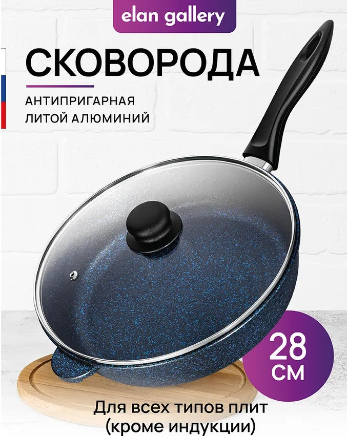 Сковорода подходит для приготовления блюд из рыбы, мяса, овощей, а также плова. Сковородка станет идеальным помощником для создания завтрака, например: яичницы, омлета, блинов, оладий. Имеет удобную ручку, что обеспечивает надежный захват при подаче еды с плиты на стол. Стеклянная крышка позволит сохранить тепло блюда, защитит от брызг, а также поможет следить за процессом приготовления пищи. Кухонная утварь станет чудесным подарком на любой праздник и придаст процессу приготовления пищи новый уровень комфорта!