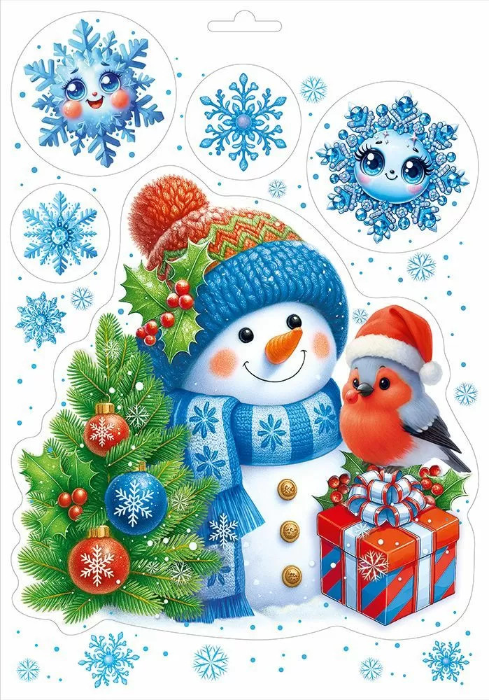 Горчаков Наклейки «Снеговик и снегирь»+34