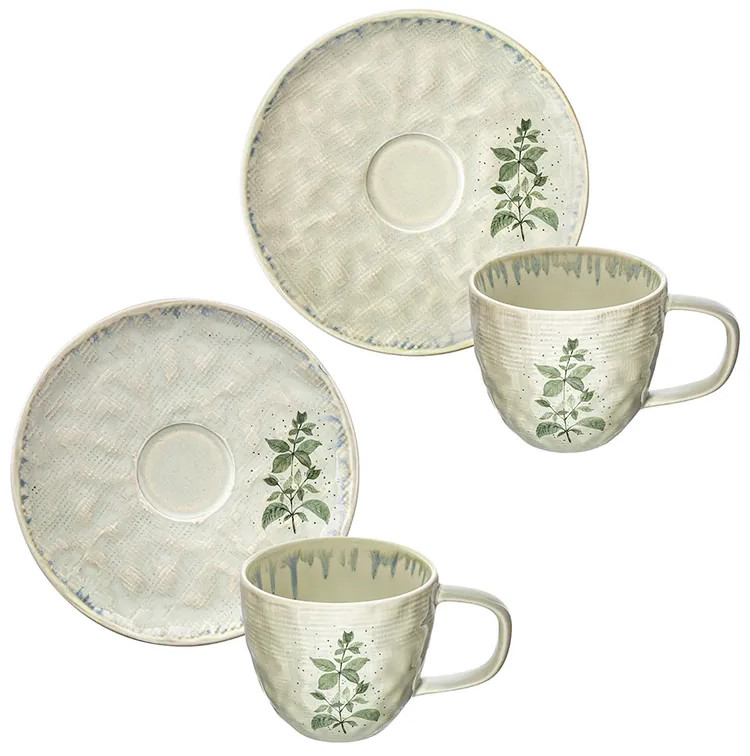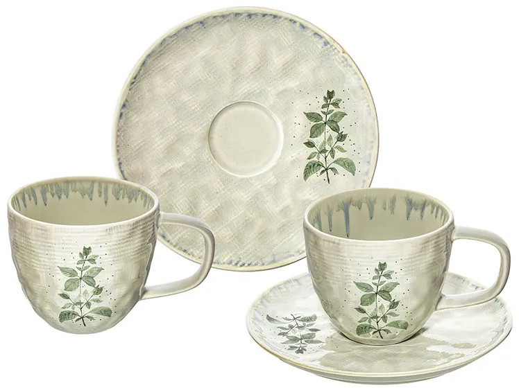 Кофейные кружки помогут вам провести множество приятных завтраков с капучино и латте, а также уютные чайные вечера с конфетами, вафлями, другими десертами и сладостями. Подойдут ценителям чая и кофе, которые любят пить из красивой и необычной посуды. Согрейтесь зимой любимым напитком: какао с маршмэллоу, ягодным чаем или горячим шоколадом. Летом освежитесь домашним лимонадом или морсом. Используйте сервировочные блюдца как подставки для чашек, порадовав гостей изящной сервировкой. Положите на десертные тарелки пирожные, кусочки торта или домашнего пирога. Подойдут не только для десертов, но и для закусок: сырной нарезки, сырокопчёной колбасы или свежих овощей и зелени. Благодаря нежному дизайну комплект впишется в интерьер любой кухни, гостиной или столовой. Поставляются в дизайнерской картонной коробке — благодаря ей вам не потребуется дополнительная подарочная упаковка. Коллекция посуды «Лимонная мята» от бренда Элан Галерея наполнит ваши будни эстеткой и лёгкостью, подарив летнюю свежесть в любое время года!