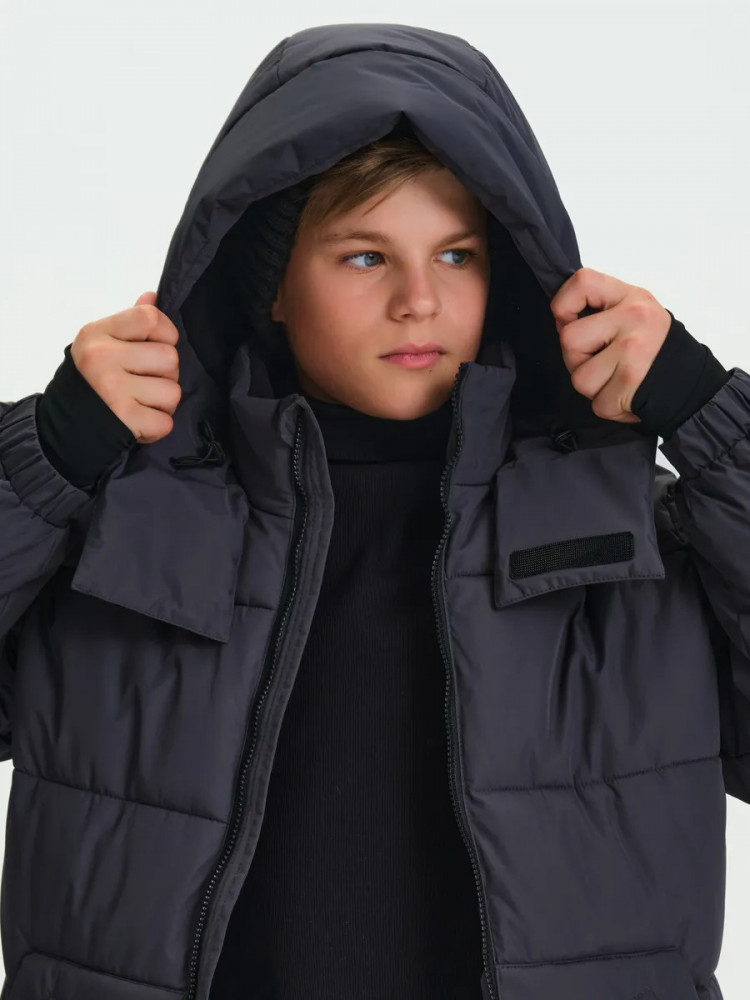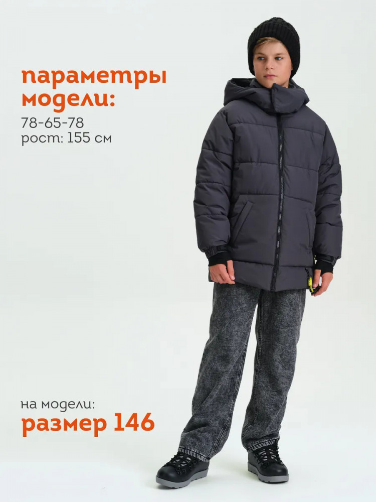 Куртка зимняя для мальчика — тёплый и функциональный зимний пуховик прямого силуэта с мягкой линией плеча, рассчитанный на морозы до −30 °C. Модель создана для дошкольников, школьников и подростков: размерная линейка от 98 см (≈3 года) до 164 см (≈14 лет), поэтому куртка подойдёт детсадовцам, младшим и старшим школьникам.