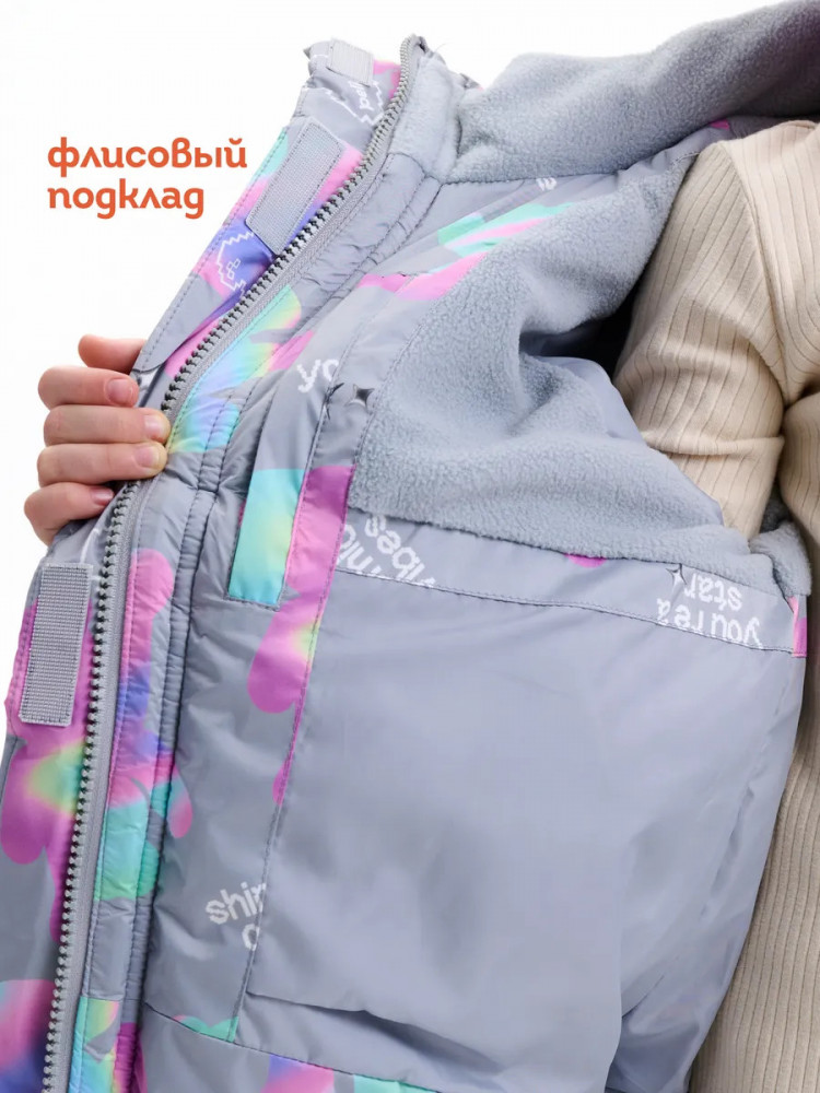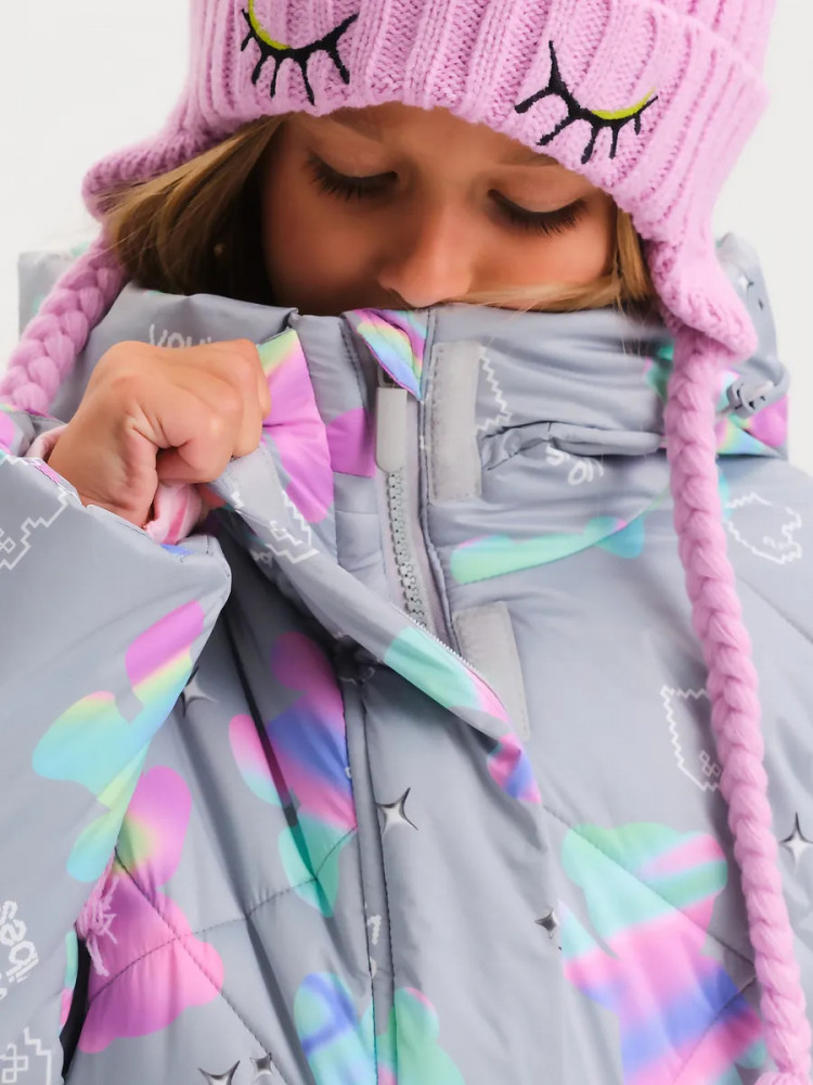 Светоотражающие элементы по боковым швам и на спинке повышают безопасность ребёнка в тёмное время суток. Родители могут быть уверены, что девочка будет в тепле, сухости и при этом заметна на дороге.