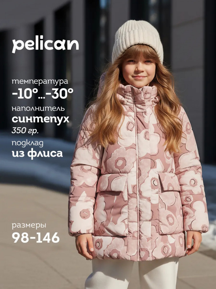 Куртка зимняя для девочки — стильный и тёплый зимний пуховик на синтепухе, рассчитанный на температуру до −30 °C. Модель доступна в размерах от 98 см (≈3 года) до 146 см (≈11 лет) и подойдёт для детсадовцев и школьниц.