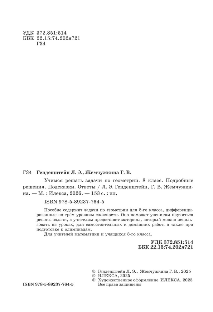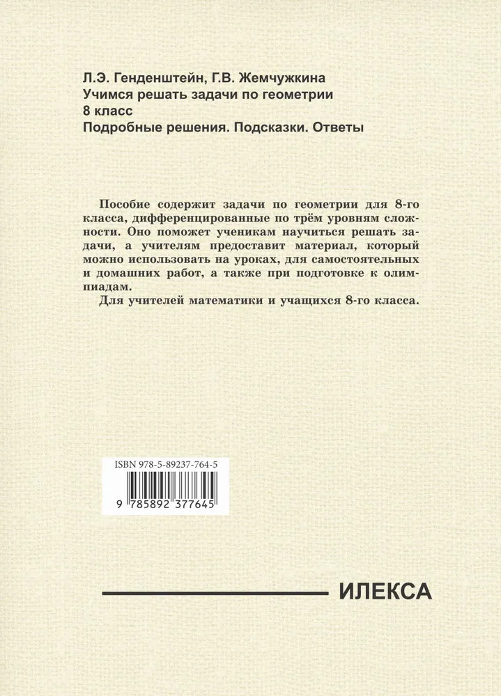 Учимся решать задачи по геометрии. 8 класс. Подробные решения, подсказки, ответыЛев Элевич Генденштейн, Галина Владимировна Жемчужкина +62