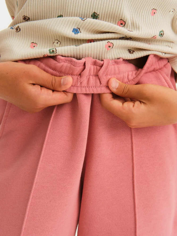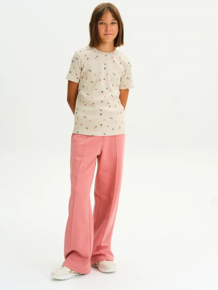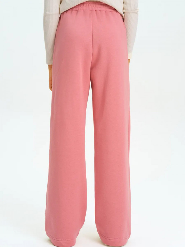 Брюки палаццо для девочки. Актуальные брюки свободного кроя подарят ребёнку комфорт и не будут стеснять движений. Широкая резинка в поясе не давит и не перекручивается. С помощью внутреннего шнура в поясе можно регулировать объём и посадку брюк. По переду застроченные стрелки — модный тренд сезона. По бокам глубокие наклонные карманы. Изделие лаконичного дизайна, без принта. Брюки неприхотливы в уходе. В составе ткани (футер с начёсом) преобладает качественный хлопок — штаны тёплые, мягкие и воздухопроницаемые, дают коже дышать. Благодаря полиэстеру изделие легко стирается, быстро сохнет и сохраняет первоначальную форму в течение долгого времени. Брюки детские выполнены в нескольких универсальных и трендовых цветах — они легко комбинируются с различными футболками, джемперами, толстовками, куртками. Палаццо брюки для девочек дошкольного и младшего школьного возраста, а также девочек-подростков. Брюки широкого кроя подходят для детского сада, прогулок, активного отдыха, спорта, а также для дома. Помните о правильном уходе за изделием: рекомендуется стирать при температуре не выше 30 °C, без предварительного замачивания, с изнанки. Это поможет сохранить качество и цвет брюк на длительное время.