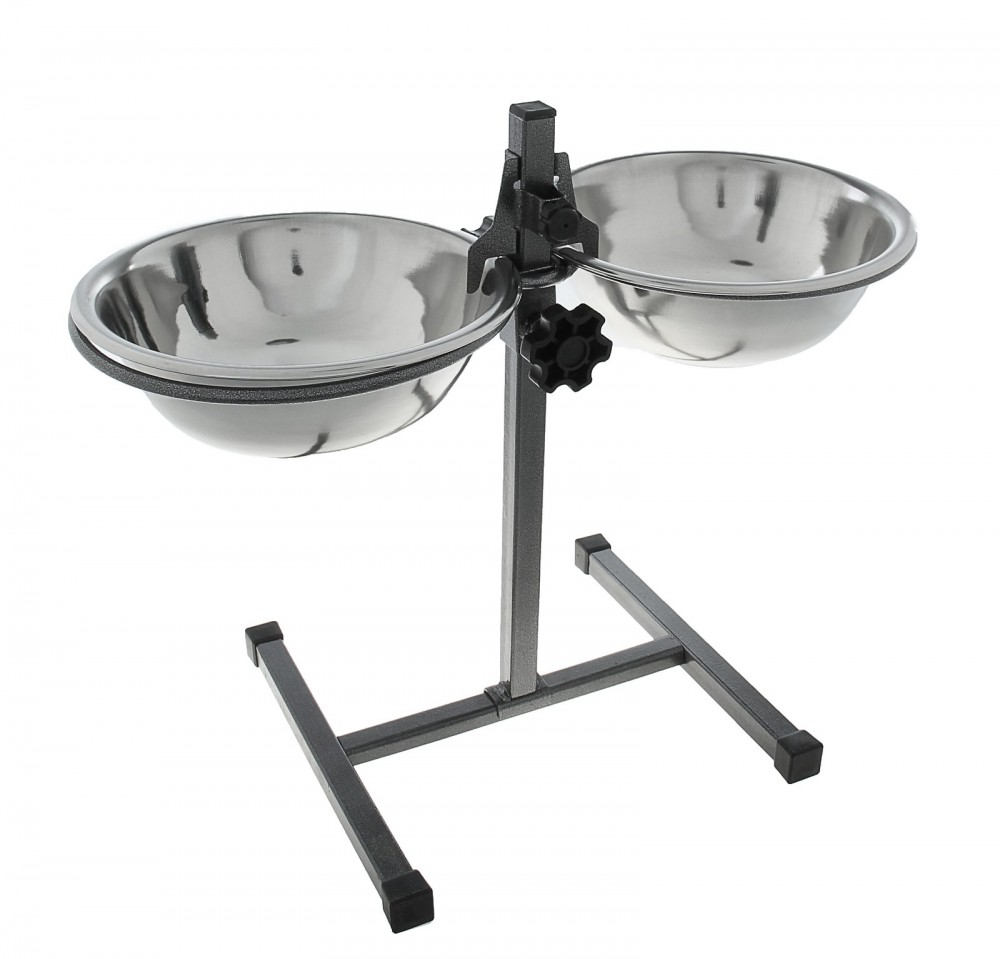 Миски объемные, но стойка на которой крепятся кольца под миски, сама опора тонкая. У меня щенок бассет хаунда, и когда я кладу пищу, вес миски, которая с едой перевешивает миску, которая с водой. Кормим натуральным кормом. Щенок при поедании корма разворачивает всю стойку, для такого размера мисок с экономили на металле для стоик, миску болтает (вверх - вниз). Хлипкая конструкция. Просто есть опыт, у нас есть стойка с объемом 0,8л., с нее ест наша такса, так вся конструкция в два раза толще и тяжелее, просто так ее не сдвинешь, и миски не болтаются.