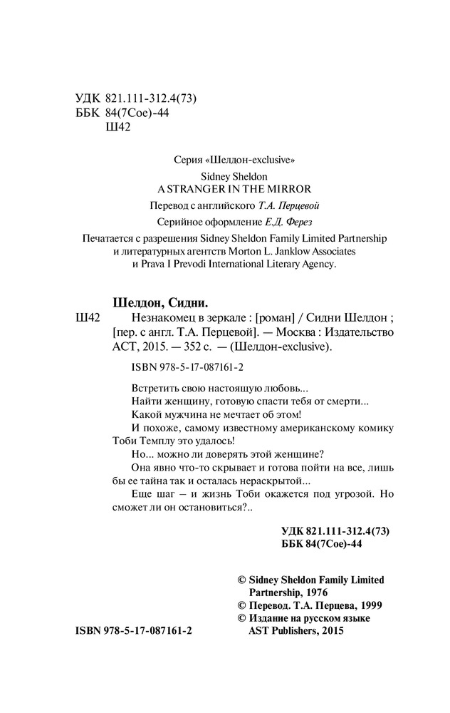 Мне очень понравилась книга, у Сидни Шелдон нет плохих. Очень быстрая доставка, что радует.