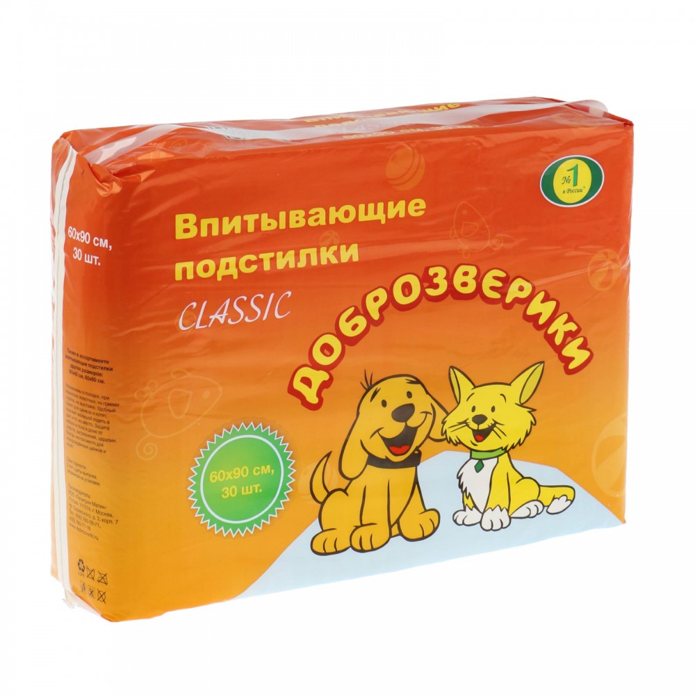 Отзывы «Подстилки впитывающие «Доброзверики Классик» 60 х 90 см, 30 шт»