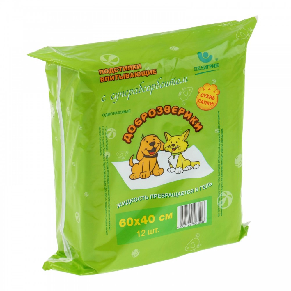 Отзывы «Подстилки впитывающие «Доброзверики» с суперабсорбентом, 60 х 40 см, 12 шт»
