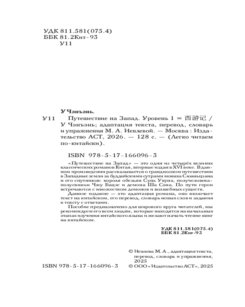 💳 Оплатить за товар можно при получении 🇰🇿 Есть бесплатная доставка по Казахстану 🎁 Копите бонусы с каждой покупки Серия: Легко читаем по-китайски «Путешествие на Запад» — это один из четырёх великих классических романов Китая, впервые издан в XVI веке. В данном произведении рассказывается о грандиозном путешествии в Западные земли за буддийскими сутрами монаха Сюаньцзана и его спутников: короля обезьян Сунь Укуна, получеловека-полусвиньи Чжу Бацзе и демона Ша Сэна. По пути герои встречаются с множеством демонов и волшебных существ, а также выдерживают многочисленные испытания. |