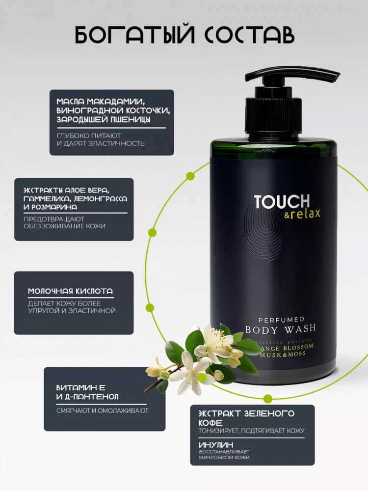 TOUCH&Relax Гель для душа парфюмированный «Флердоранж, мускус и мох»