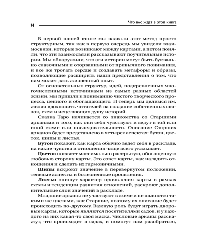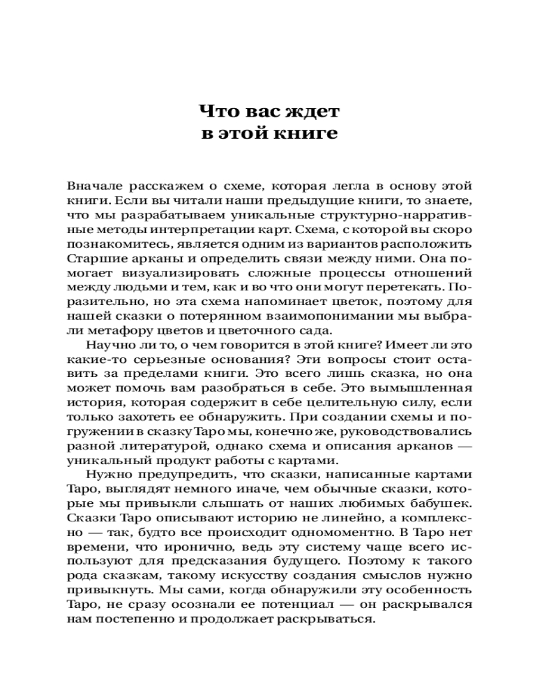 Серия: Законы мироздания Устали от однотипных книг по Таро, где просто пересказывают значения карт? Это издание — долгожданный глоток свежего воздуха в мире тарологии. Его авторы — глубокие знатоки символов, одна из них — дипломированный психолог, что делает каждую главу по-настоящему познавательной и практичной. Это не просто книга — это настоящая сказка, происходящая с вами в волшебном саду: каждый листок, бутон и даже шипы Старших Арканов способны многое рассказать о ваших отношениях. Начните читать — и через несколько минут вы поймаете себя на том, что не можете оторваться.