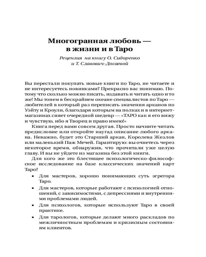 Эта книга — для вас, если вы профессиональный таролог, психолог, использующий Таро, или практик, который хочет выйти за рамки гадания и помогать людям на глубинном уровне. |
