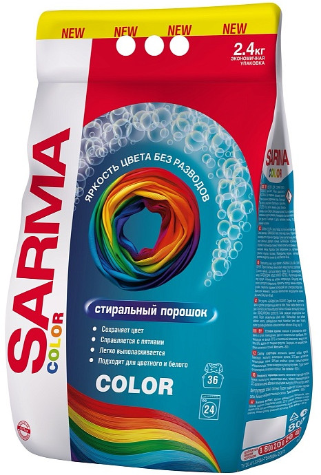 Стиральный порошок «Сарма Color» — это комплексная забота о цветном белье. Он не просто отстирывает вещи, но и активно сохраняет их цвет, мягкость и внешний вид, делая их носку более долгой.