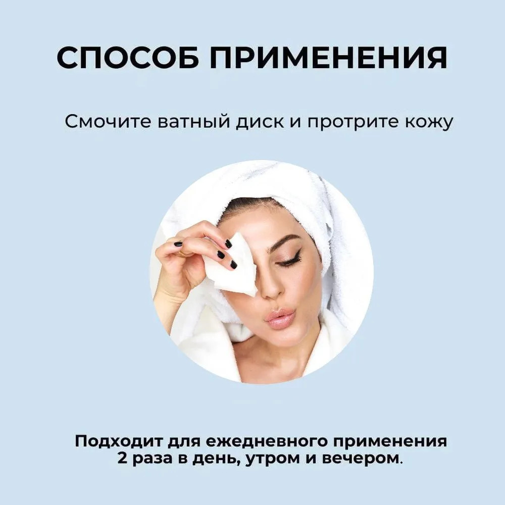 Способ применения: после очищения кожи, нанести небольшое количество тонера на ладони. Равномерно распределить похлопывающими движениями по коже. Чтобы глубоко увлажнить кожу, нанесите тонер в несколько слоев. Если ваша кожа раздражена из-за негативного воздействия окружающей среды, пропитайте тонером хлопковые салфетки. Используйте как увлажняющий компресс для кожи: подержите 5-10 минут.