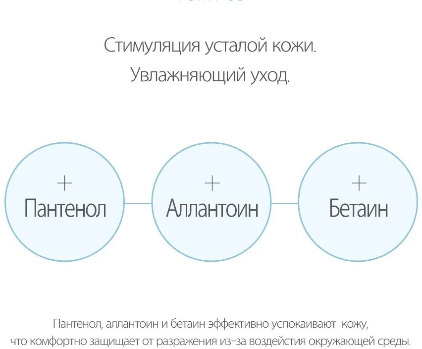 Запатентованный комплекс Hatching EX-07, содержащий энзимы, отвечает за деликатное отшелушивающее действие тонера, устраняя отмершие частички и излишки себума, разглаживая микророльеф и способствуя обновлению кожного покрова. Пантенол, аллантоин и бетаин оказывают успокаивающее и тонизирующее действие.