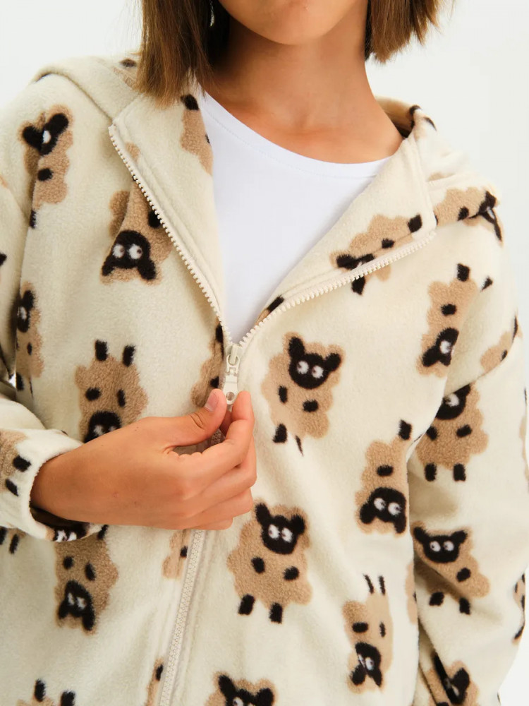 Флисовый жакет на молнии — лёгкая и тёплая вещь небольшого объёма с прямым силуэтом, которая отлично подойдёт как самостоятельная толстовка или как поддева под куртку. Мягкий флис сохраняет тепло и при этом быстро сохнет, а уход за тканью простой и удобный — стирается легко и не требует глажки.