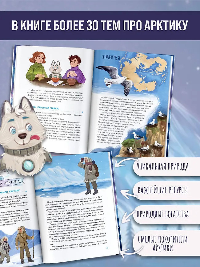 💳 Оплатить за товар можно при получении 🇰🇿 Есть бесплатная доставка по Казахстану 🎁 Копите бонусы с каждой покупки Серия: Моя Россия Приготовьтесь к удивительному путешествию в самый холодный и загадочный край нашей планеты — Арктику! Юные исследователи Ваня и Варя живут среди бескрайних снегов и северного сияния вместе со своей умной собакой Лайкой, которая не только умеет говорить, но и знает все тайны этого сурового края. |