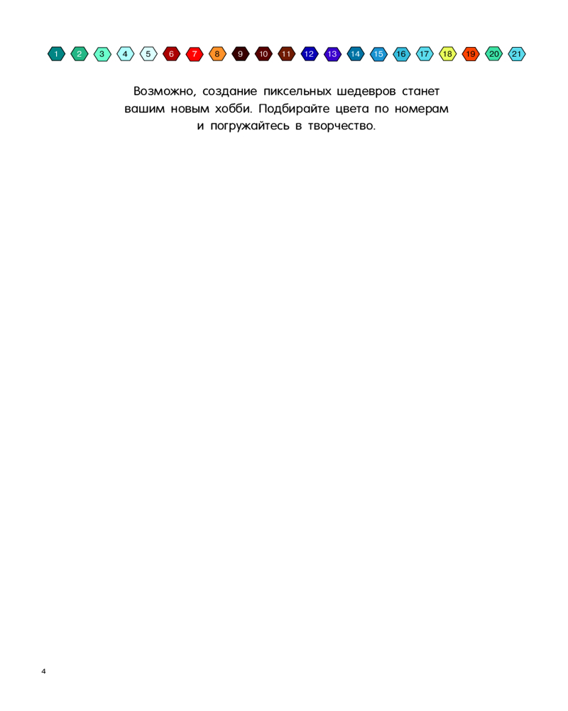 💳 Оплатить за товар можно при получении 🇰🇿 Есть бесплатная доставка по Казахстану 🎁 Копите бонусы с каждой покупки Серия: Цветная раскраска-квест: по номерам и фигурам Раскраска по номерам «Фэнтези» — уникальный метод развития и арт-терапия для творческих личностей всех возрастов. Книга-головоломка для создания пиксельных рисунков в оригинальной технике с использованием геометрических ячеек. Хотите достичь внутренней гармонии и спокойствия — попробуйте шаг за шагом раскрашивать квадраты, круги, треугольники, шестиугольники, ромбы. Для каждой картины предлагается палитра цветов и оттенков — подобрав их по номерам, можно своими руками нарисовать завораживающие постеры. Немного усердия — и неповторимый шедевр станет хорошим украшением интерьера или замечательным подарком. Подходит и детям, и взрослым. |