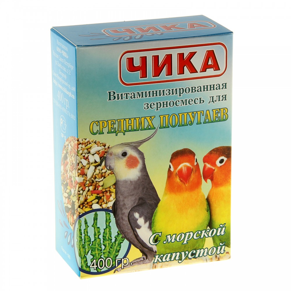 | Чика Витаминизированная смесь с морской капустой для попугаев, 400 гр