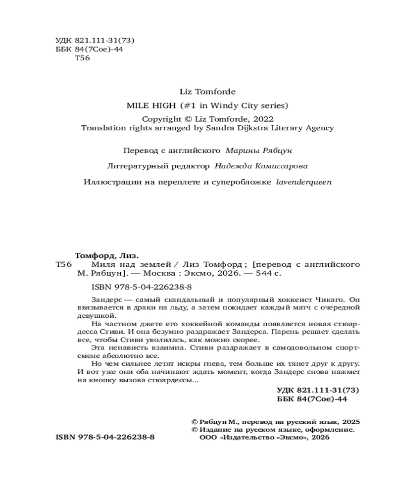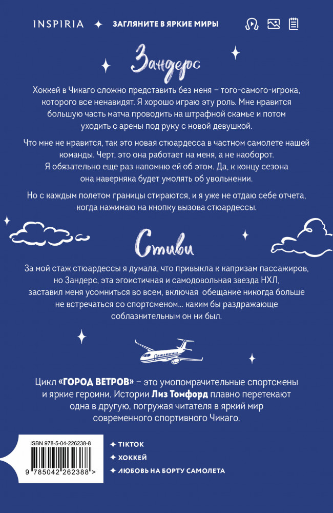 💳 Оплатить за товар можно при получении 🇰🇿 Есть бесплатная доставка по Казахстану от 1 дня 🎁 Копите бонусы с каждой покупки Серия: Cupcake. Горячие спортсмены Буктока. Хиты Лиз Томфорд Зандерс — самый скандальный и популярный хоккеист Чикаго. Он ввязывается в драки на льду, а затем покидает каждый матч с очередной девушкой. На частном джете его хоккейной команды появляется новая стюардесса Стиви. И она безумно раздражает Зандерса. Парень решает сделать всё, чтобы Стиви уволилась как можно скорее. Эта ненависть взаимна. Стиви раздражает в самодовольном спортсмене абсолютно всё. Но чем сильнее летят искры гнева, тем больше их тянет друг к другу. И вот уже они оба начинают ждать момент, когда Зандерс снова нажмёт на кнопку вызова стюардессы... |