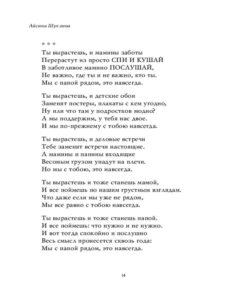 💳 Оплатить за товар можно при получении 🇰🇿 Есть бесплатная доставка по Казахстану от 1 дня 🎁 Копите бонусы с каждой покупки Серия: Белая лирика. Стихи, покорившие мир Айсина Шуклина — поэтесса, мама, призер конкурса «Женщина года 2024» в номинации «Доброе сердце». Читатели называют ее автором стихов о самых важных людях. В стихах выделяют тепло, глубину, искренность и все те трепетные чувства, о которых порой мы забываем сказать своим близким. Каждое стихотворение трогает до глубины души. И попадает в самое сердце. |