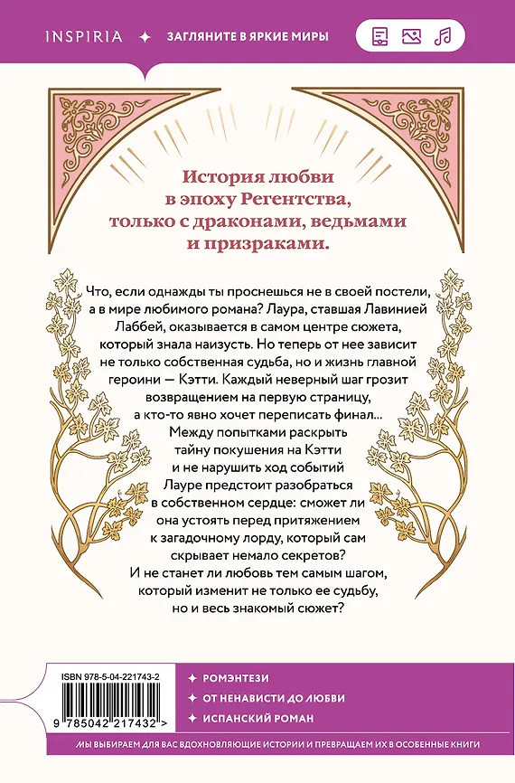 Что, если однажды ты проснешься не в своей постели, а в мире любимого романа? Лаура, ставшая Лавинией Лаббей, оказывается в самом центре сюжета, который знала наизусть. Но теперь от нее зависит не только собственная судьба, но и жизнь главной героини — Кэтти. Каждый неверный шаг грозит возвращением на первую страницу, а кто-то явно хочет переписать финал... Между попытками раскрыть тайну покушения на Кэтти и не нарушить ход событий Лауре предстоит разобраться в собственном сердце: сможет ли она устоять перед притяжением к загадочному лорду, который сам скрывает немало секретов? И не станет ли любовь тем самым шагом, который изменит не только ее судьбу, но и весь знакомый сюжет? |