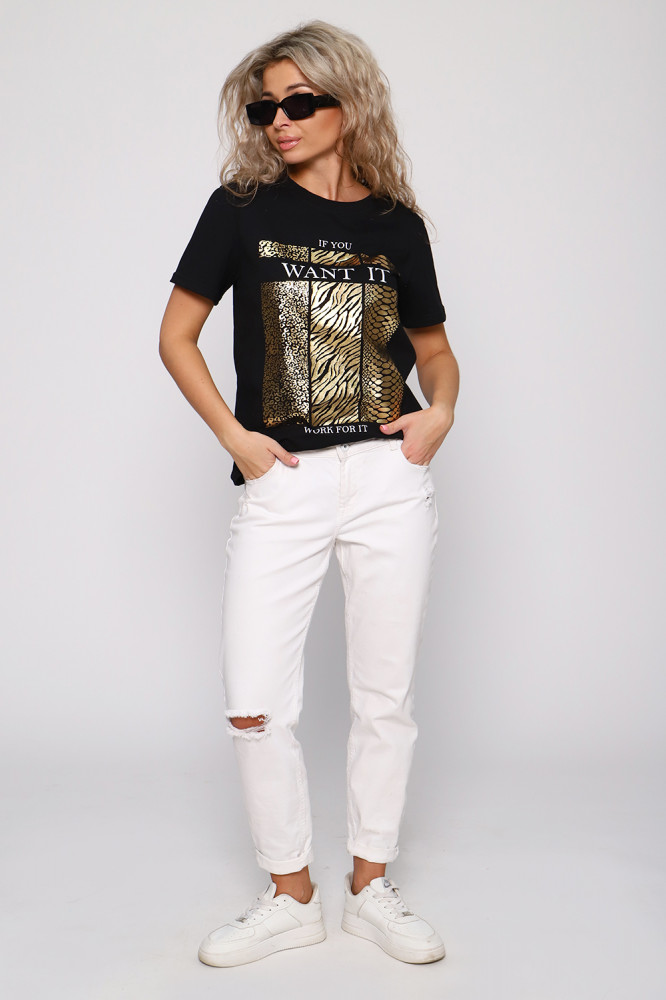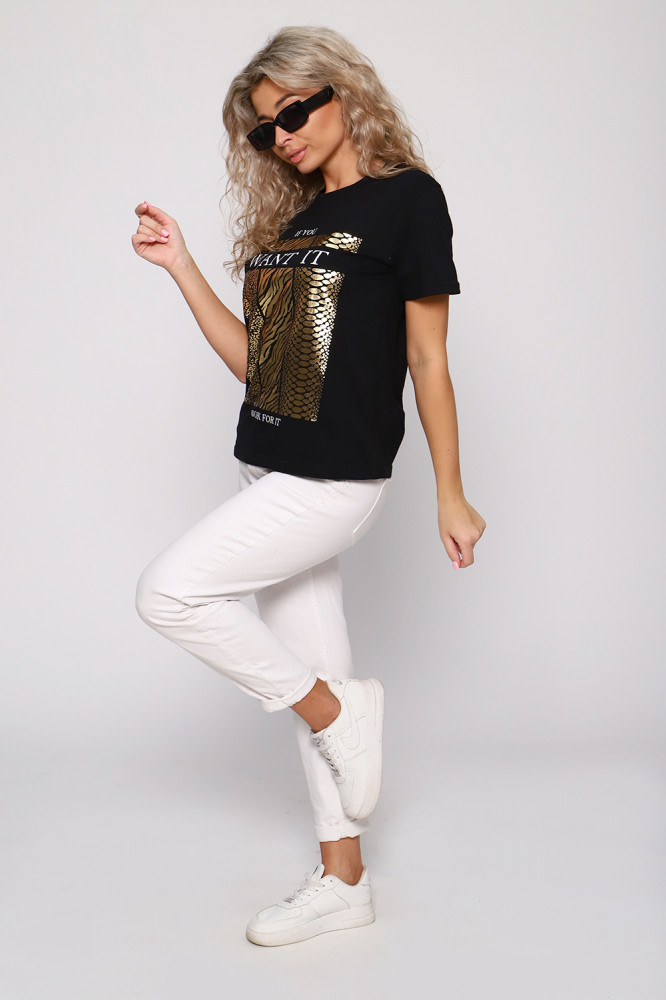 Эта футболка станет незаменимым элементом вашего гардероба благодаря идеальному сочетанию комфорта, стиля и практичности. Изготовленная из мягкого и дышащего материала, она обеспечивает приятное ощущение на коже и удобство в течение всего дня. Универсальный дизайн делает её подходящей для любого сезона и случая — будь то прогулка, работа, встреча с друзьями или активный отдых. Мягкая ткань легко стирается и сохраняет форму и цвет даже после многократных стирок.