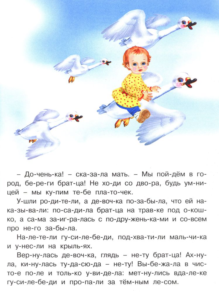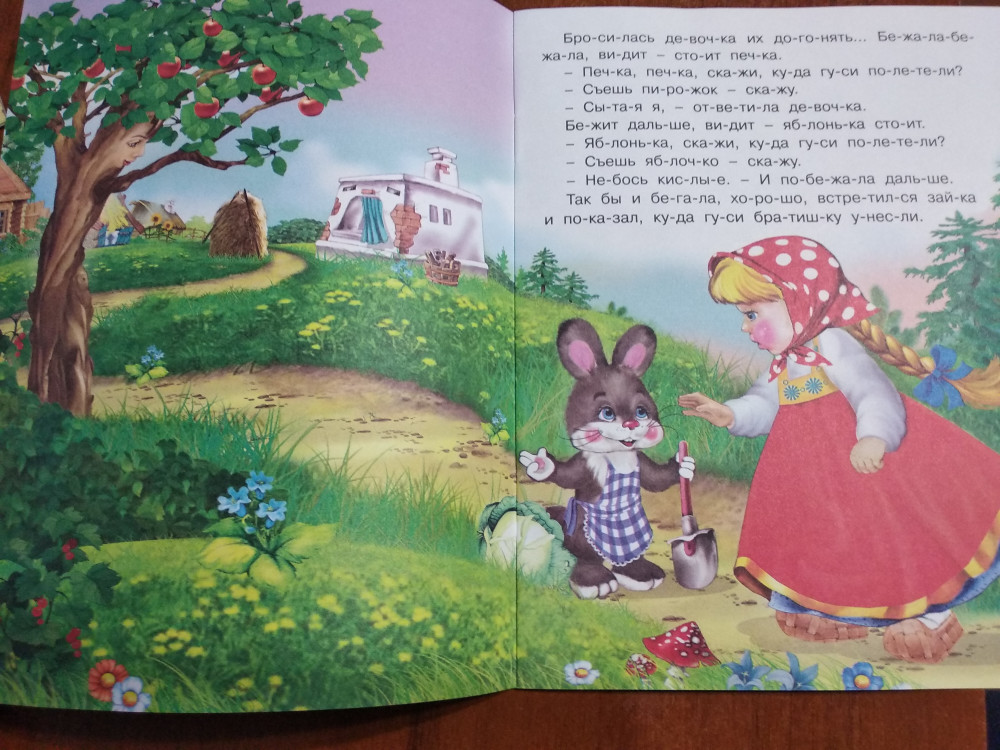 Гуси-лебеди+14 яркие иллюстрации крупные буквы плотная бумага для начинающих цена-качество