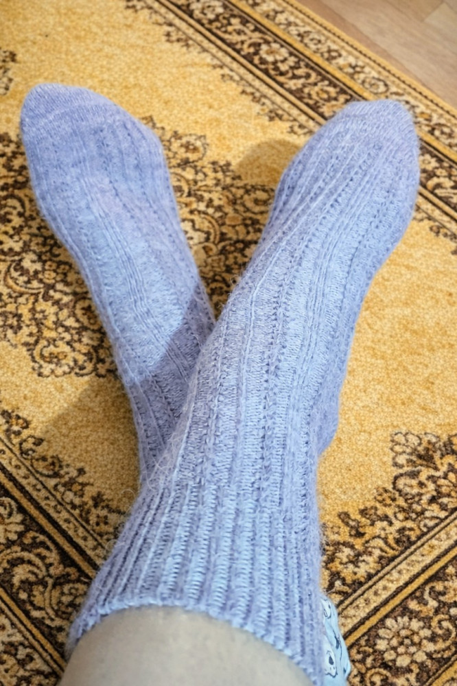 Чудесные носочки, теплые, не колючие, резинка высокая, не тугая, на мой 38 размер чуть великоваты, но мне нравится, что бы свободные были, не в обтяжку, правда цвет не такой яркий, как на фото.