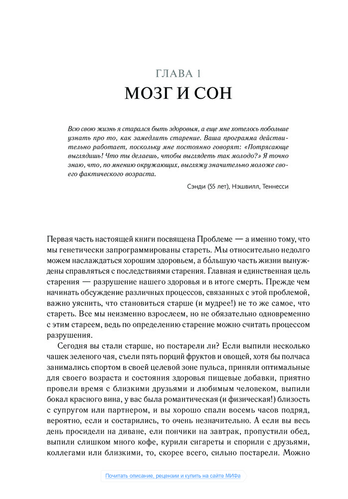Читать и применять всем, кто хочет дожить до времён, когда технологии смогут продлить качественную жизнь без бремени заболеваний старческого возраста.