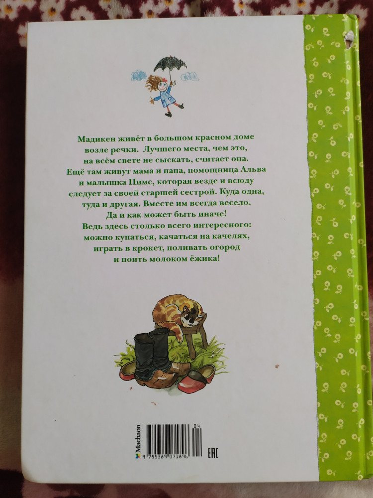 Любимая книга моего детства, истрепалась и осталась в родительском доме. И поэтому для дочери первой её и подарила, когда она научилась читать. Книга Астрид Линдгрен про Мадикен, Пимс и Мию про счастливое шведское детство, про приключения. Рекомендую для развития домашнего чтения, шрифт читабельный, рисунки забавные. В очередной раз благодарность Флипу за широкий выбор книг, безупречный сервис🚀
