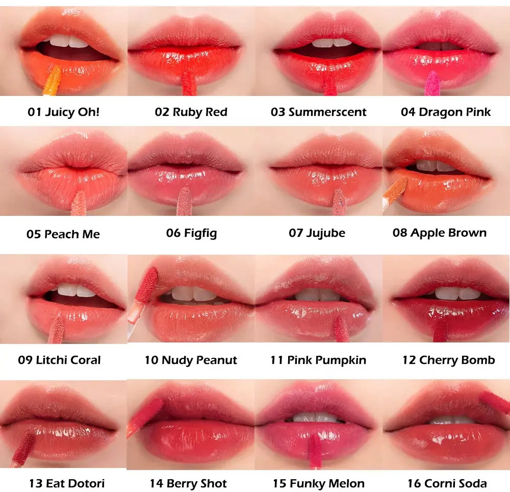 Глянцевый тинт для губ Rom&nd Juicy Lasting Tint — это пигментированный жидкий флюид, который придает губам легкий оттенок. От классической помады и блеска тинт отличается тем, что губы после его нанесения выглядят максимально естественно, будто макияжа вовсе нет, а его уходовая формула смягчает и увлажняет кожу губ. После нанесения тинт будто сливается с кожей — покрытие становится неощутимым, не смазывается, оставляя на губах сияющий глянец, а высокое качество пигментов обеспечивает стойкость на протяжении всего дня.