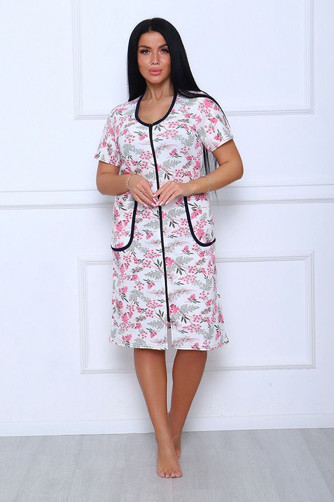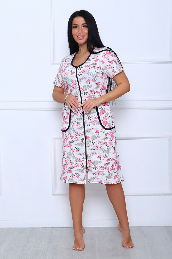 Женский халат создан для тех, кто ценит комфорт и стиль в каждом моменте. Мягкая приятная к телу ткань обеспечивает уют и легкость движений, позволяя наслаждаться домашними делами или отдыхом. Удобный крой подчёркивает естественную линию фигуры, а аккуратные детали придают изделию элегантный вид. Такой халат станет идеальным выбором для повседневного использования, утренних ритуалов или вечернего расслабления, создавая ощущение комфорта и гармонии каждый день.
