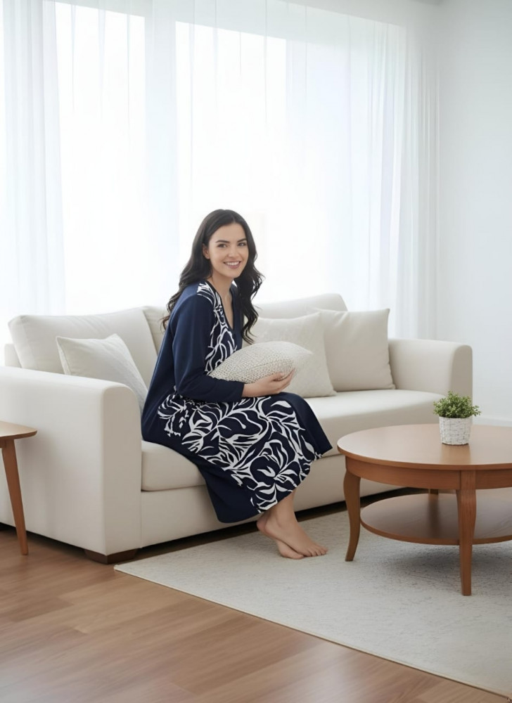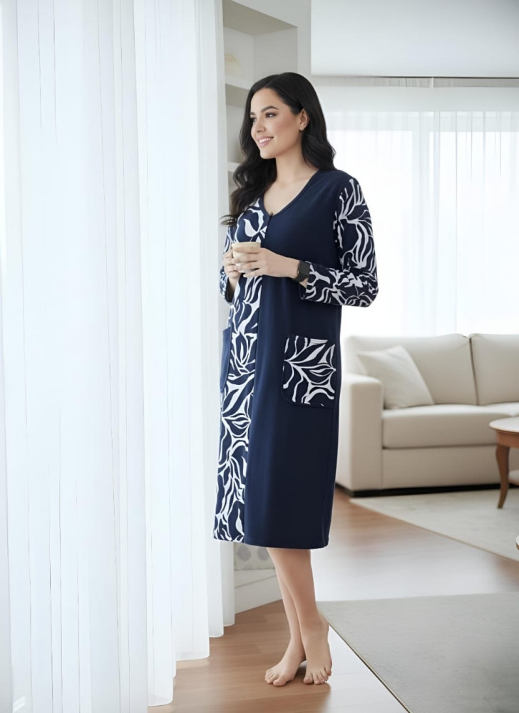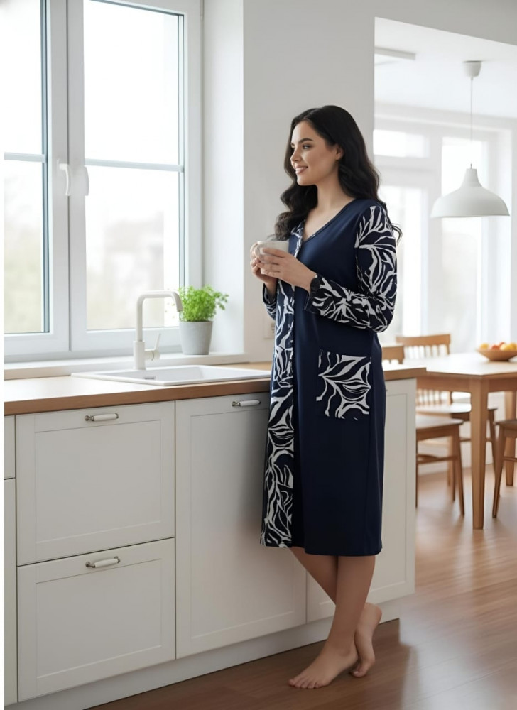 Женский халат создан для тех, кто ценит комфорт и стиль в каждом моменте. Мягкая приятная к телу ткань обеспечивает уют и легкость движений, позволяя наслаждаться домашними делами или отдыхом. Удобный крой подчёркивает естественную линию фигуры, а аккуратные детали придают изделию элегантный вид. Такой халат станет идеальным выбором для повседневного использования, утренних ритуалов или вечернего расслабления, создавая ощущение комфорта и гармонии каждый день.